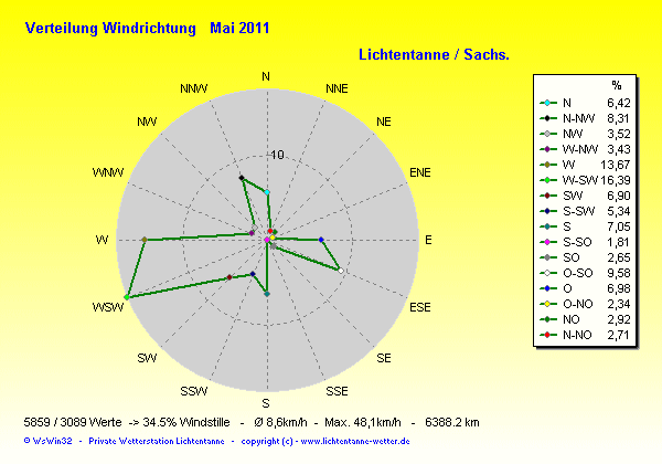 Windrichtungsverteilung in Prozent